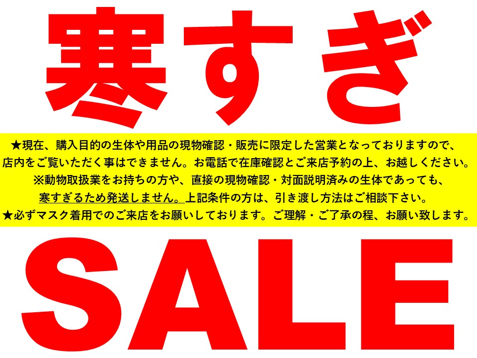 ★現在、購入目的の生体や用品の現物確認・販売に限定した営業となっております(店内をご覧いただく事は出来ません)。